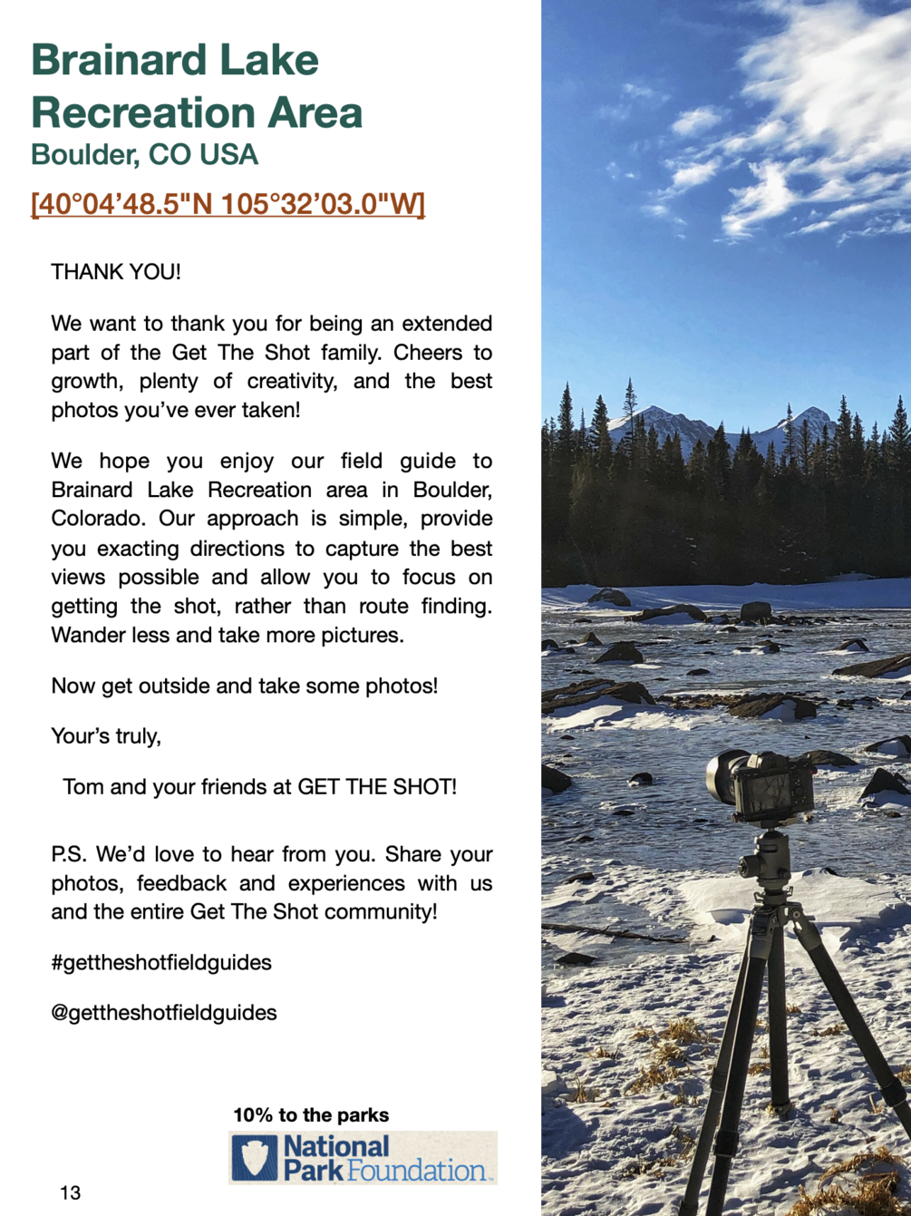 The full digital download of the GET THE SHOT Photography Field Guide - Brainard Lake