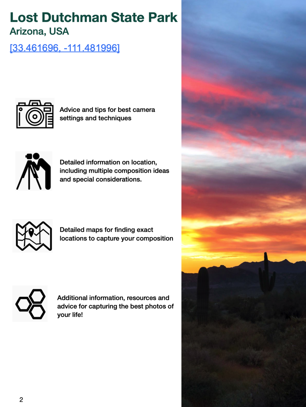 The full digital download of the GET THE SHOT Photography Field Guide - Lost Dutchman State Park